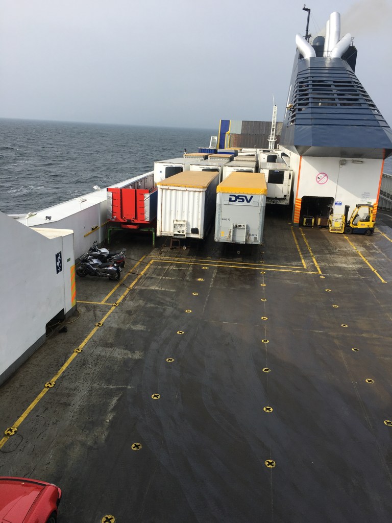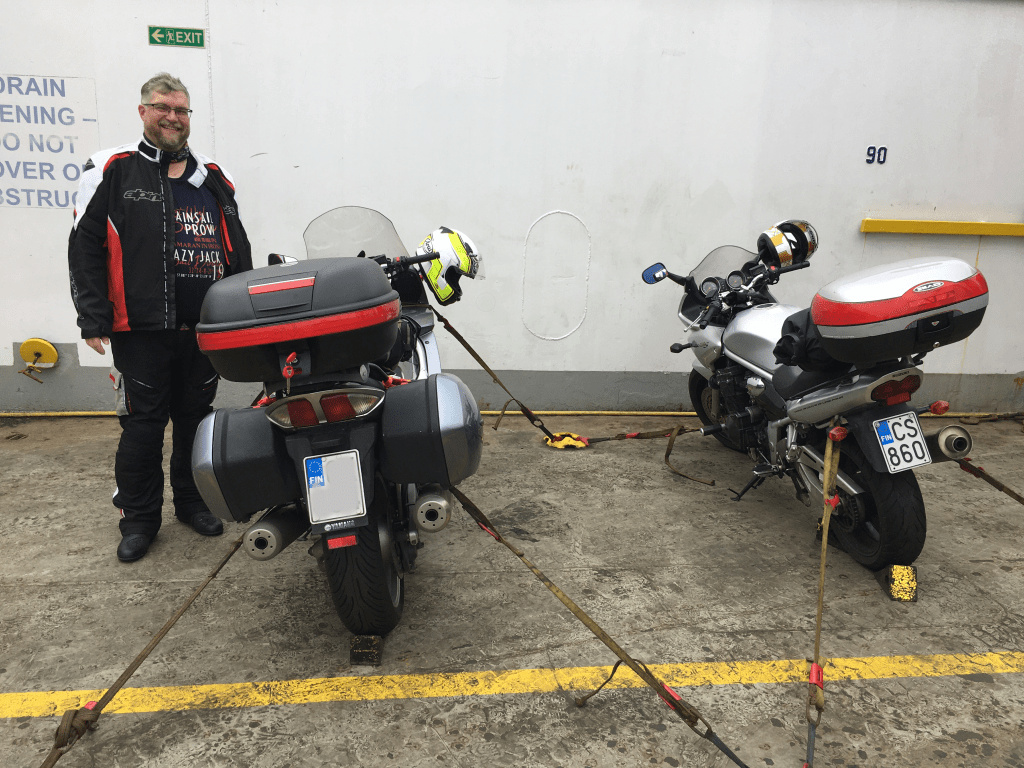 5. päivä Rewal-Karlshamn. Rewalista suuntasimme aamupalalle kohti Swinoujscien kaupunkia noin tunnin ajomatkan päähän. Kaupunkiin saavuimme yhden lossimatkan ja pyörien tankkauksen jälkeen ja pikaisen aamupalan jälkeen olikin jo kiirehdittävä vajaan kahdensadan kilometrin päässä sijaitsevaan Sassnitziin ja Ruotsiin lähtevälle kantosiipialukselle. Puolan ja Saksan raja ylittyi ilman että olisimme rajaa edes huomanneet. Ennen alukseen nousemista teimme pikaisen vierailun Proraan, missä sijaitsee natsien suunnittelema ja rakentama lomahotellialue. Parin tunnin laivamatkan jälkeen pääsimme tutustumaan Ystadiin, joka vaikutti Puolan vilinän jälkeen lähes autiolta. Ystadista matka jatkui tällä kertaa ruotsalaisia maaseututeitä pitkin kohti Karlshamnia, missä oli tarkoitus nousta rahtialukseen, joka veisi meidät takaisin Liettuaan. Loppumatkan ennen Karlshamnia ajoimme pitkin rantaa kulkevaa moottoritietä iltahämärässä sateella. Matkanopeus täytyi tällä kertaa pudottaa muuta liikennettä alhaisemmaksi, koska näkyvyys kypärässäni olevan tummennetun visiirin läpi oli enemmän kuin heikko. Perille satamaan saapuessamme virkailija kyseli pakollisten koronatodistusten lisäksi pyöräni rekisteriotetta. Kun olin sen kotiin unohtanut, oli vaihtoehtoina joko laivamatkan peruminen, koska pyörää ei matkarahdiksi otettaisi tai sitten rekisteriotteen taikominen kännykkääni. Jälkimmäinen onnistui kotijoukkojen avustuksella ja pääsimme nousemaan laivaan iltamyöhään määränpäänä Liettuan Klaipeda. Matkaa vaiherikkaalle päivälle kertyi 420 km.