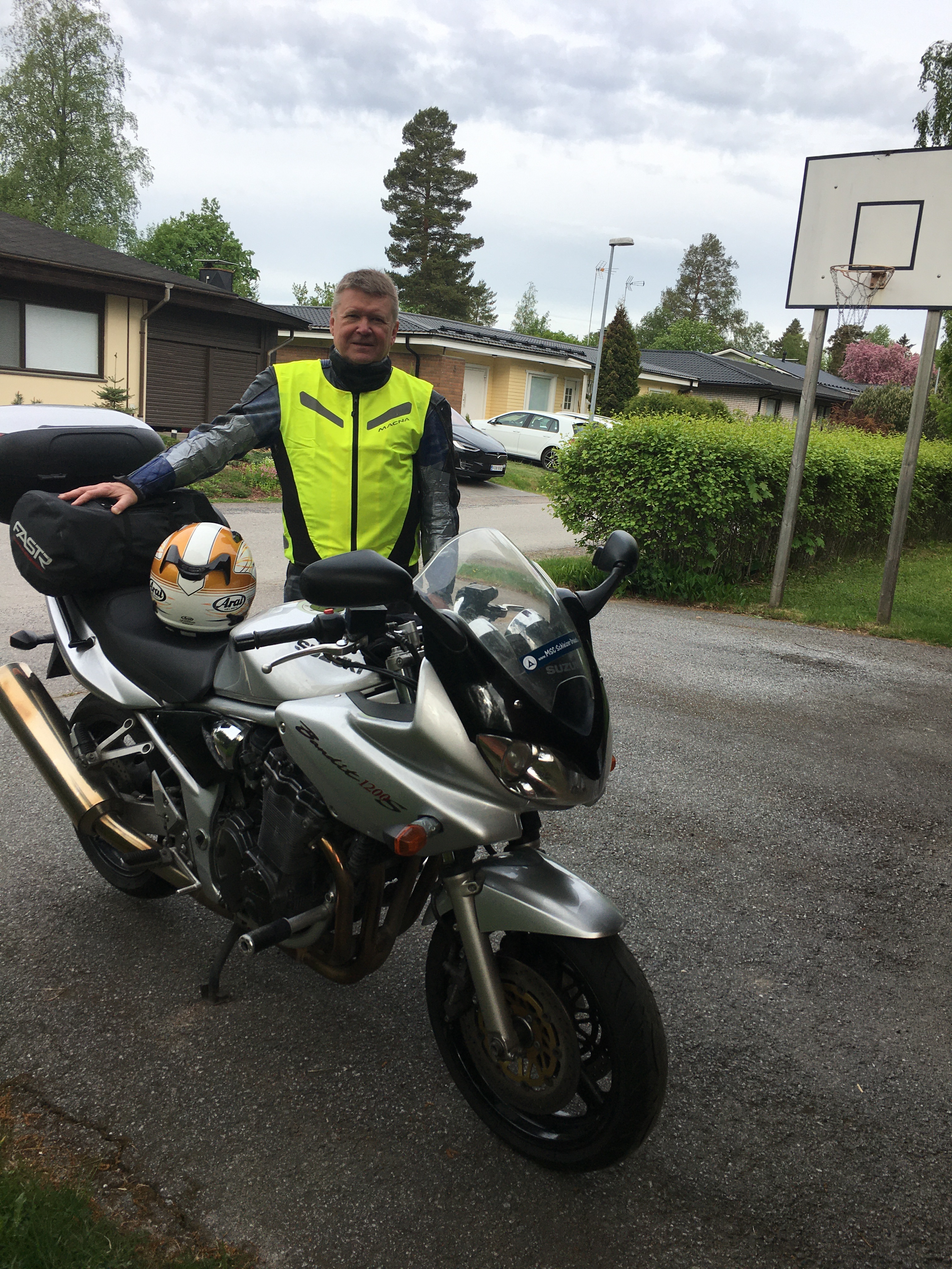 Ensimmäinen oppi tuli heti kymmenen kilometrin ajon jälkeen – huomioliivin pitää olla riittävän tiukka, muuten se lepattaa ja ketju aukeaa. Korjasin tilanteen jesarilla ja Krakovassa hotellissa löytyi kaapista ompelijan ’vermeet’, joilla sain kursittua liivin pienemmäksi.