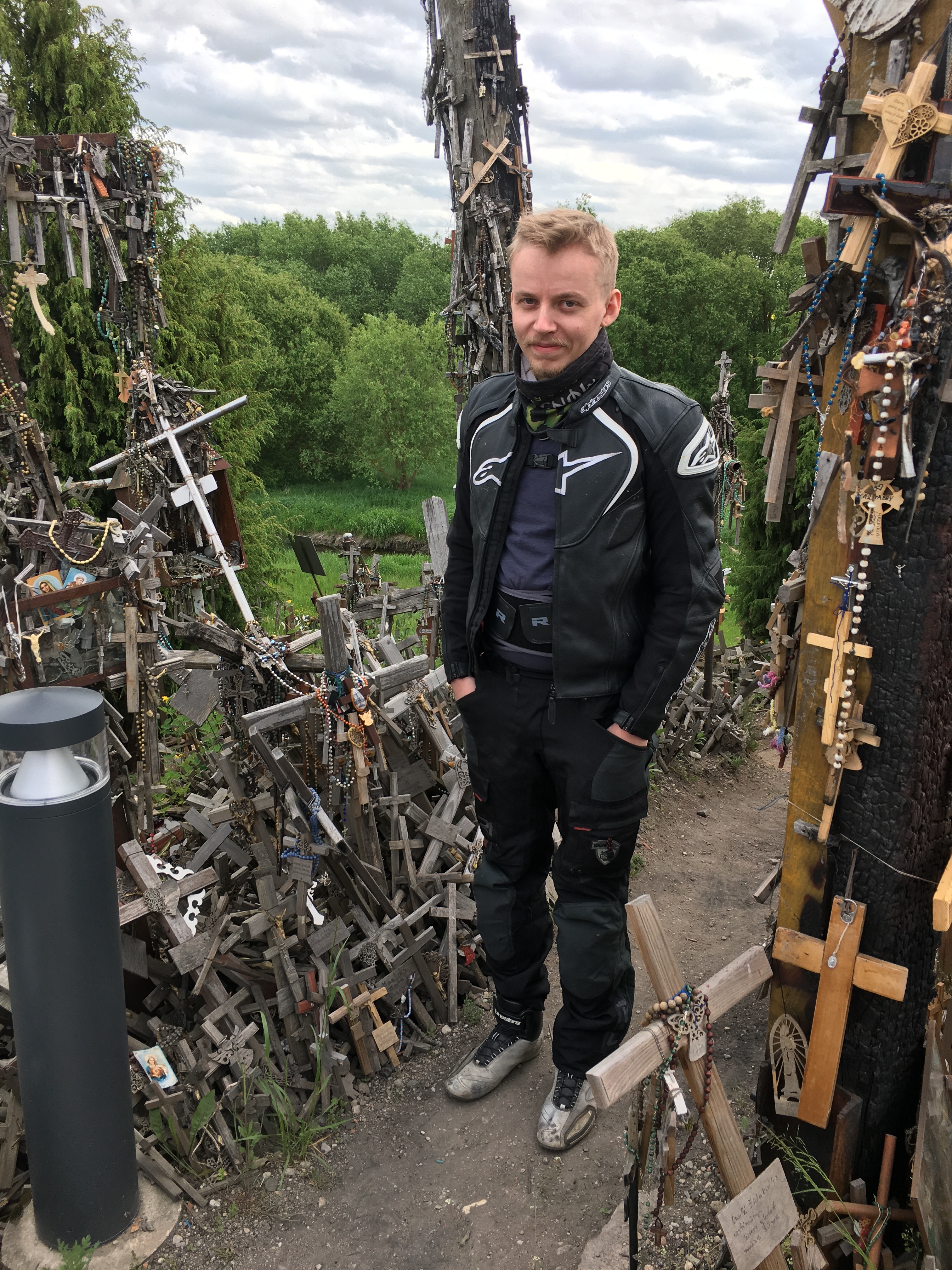 Toukokuun loppu oli vihdoin käsillä ja pääsimme ’tositoimiin’. Viileässä poutasäässä lähdimme aamupäivällä Tampereelta kolmen hengen porukalla kohti Keski-Euroopan seikkailua Bratislavan ollessa kääntöpiste. Muitakin pitkämatkalaisia oli saapunut Helsingin Länsisatamaan ja eräs pariskunta oli lähdössä kahden viikon matkalle Sloveniaan. Keli oli meille suosiollinen koko reissun ajan ja ajelimme tuttuja maaseutureittejä pitkin aina Puolaan Varsovan seuduille. Matkalla sinne poikkesimme Ristien mäellä Liettuassa. Matka taittui ja maisema muuttui kumpuileviksi pelloiksi ja niityiksi kuusimetsien jäädessä kauaksi taakse Pohjolaan. Teiden pientareet olivat hyvin hoidetut jo Tallinnasta alkaen, eikä asfaltti ollut nähnyt nastarengasta ja haukat partioivat peltojen laitamilla, lähestyimme Keski-Eurooppaa.