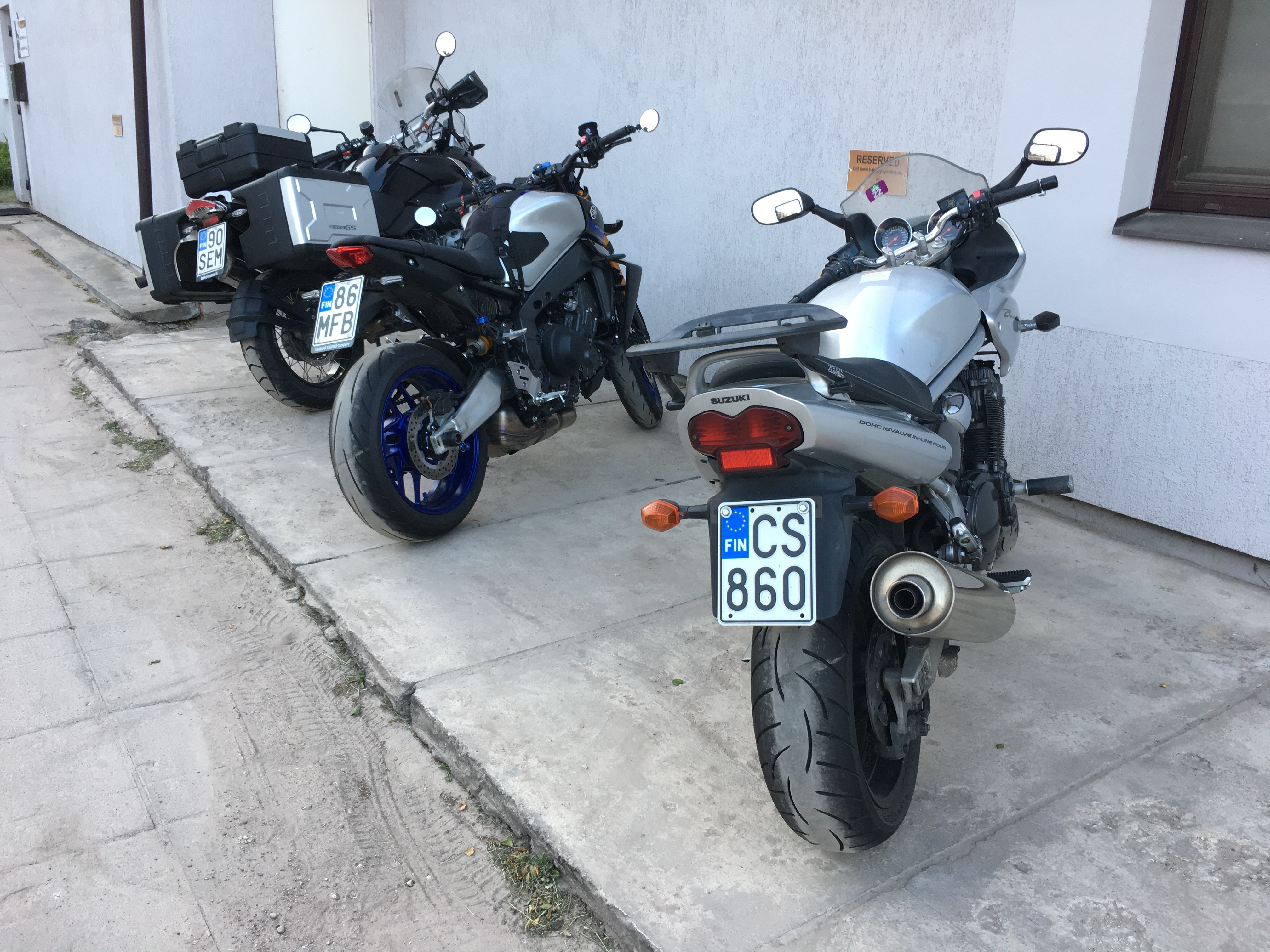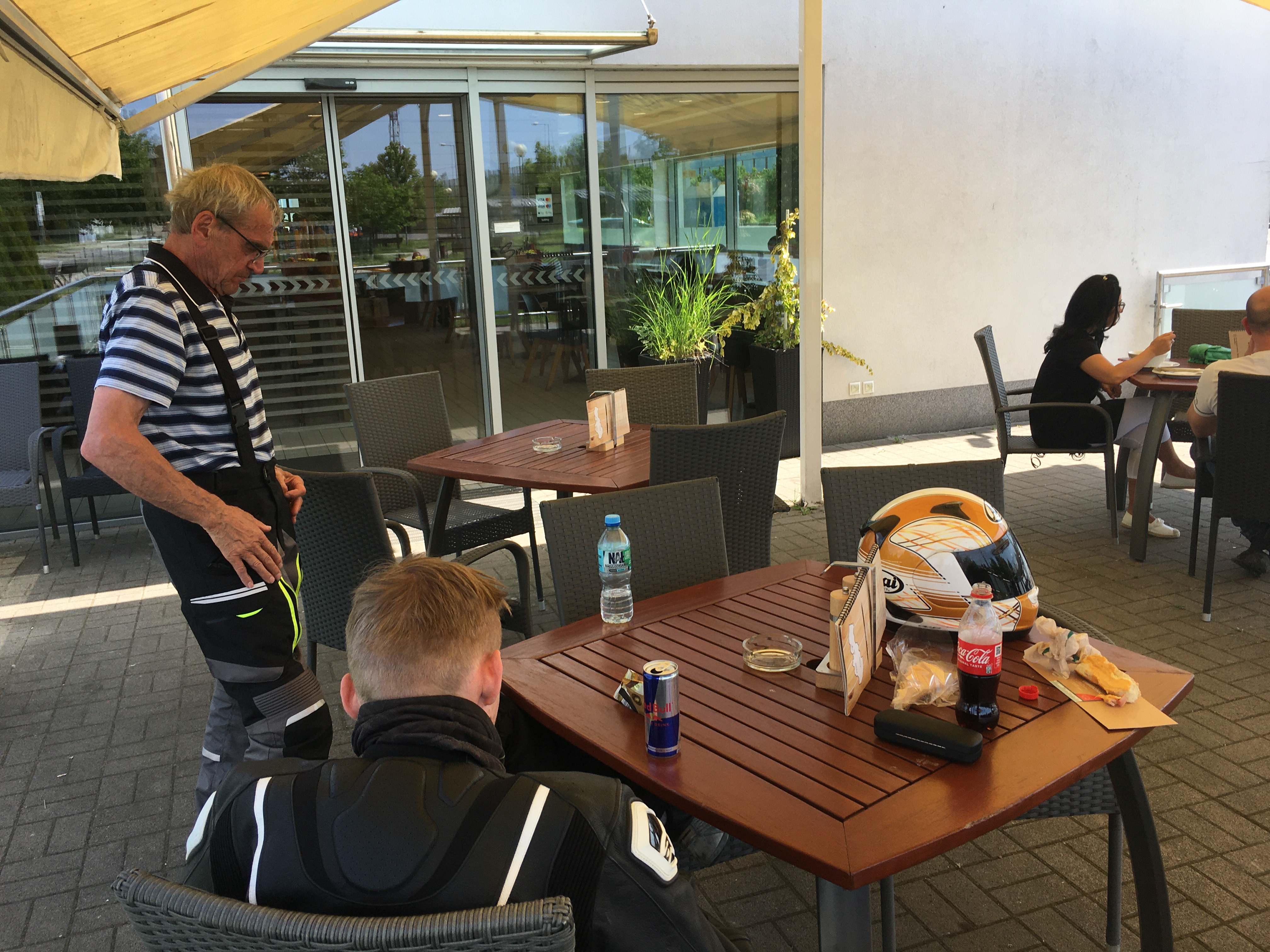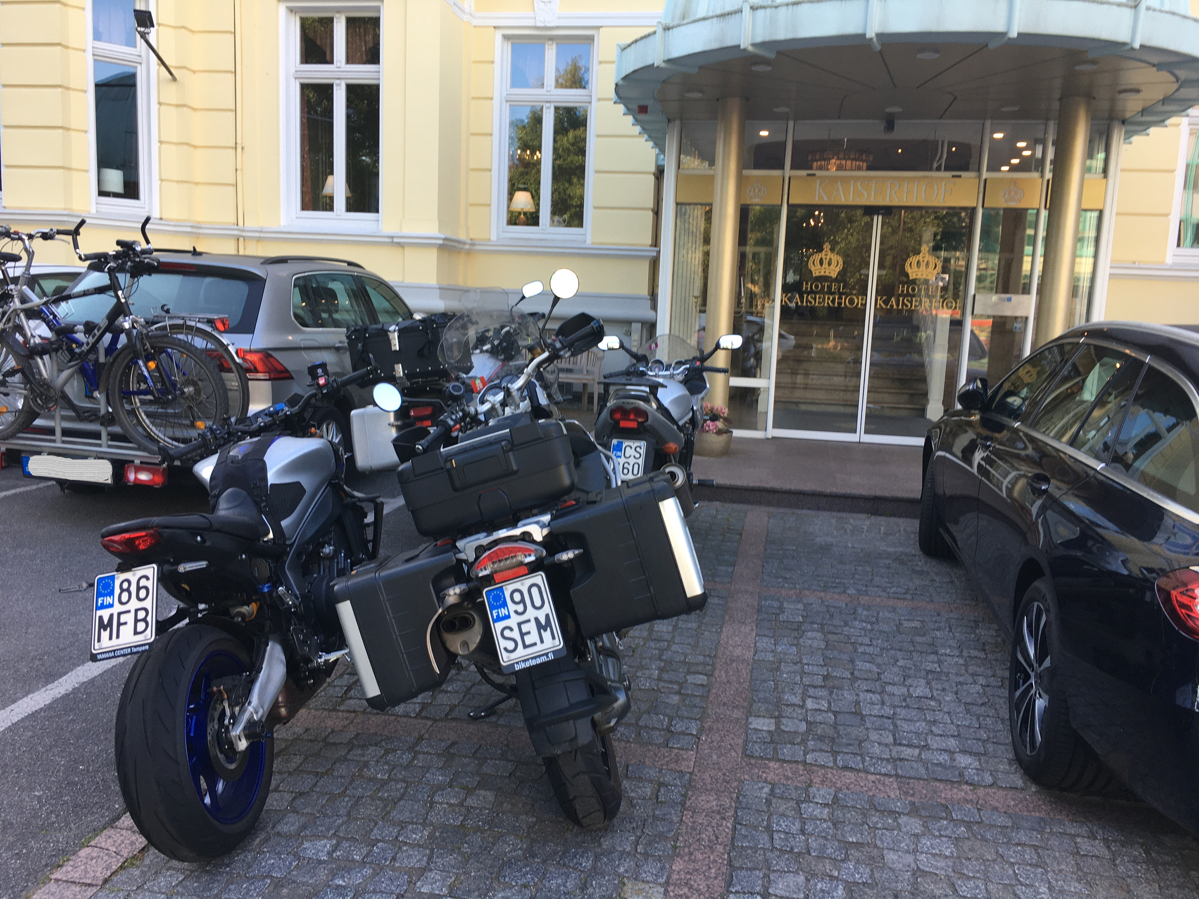 Ehdimme vaihteeksi syödä aamupalan, koska laiva oli satamassa vasta klo 10:00. Kaupungin läpi suunnistettuamme tiemme erosi, osan porukkaa lähtiessä kohti Turkua ja osan kohti Tamperetta. Linnatuulessa ennen Hämeenlinnaa vedimme sadeasut päälle ja puoli tuntia ennen Tampereelle saapumista ajoimme Valkeakosken kohdalla matkan ensimmäiseen ja ainoaan sateeseen. Tulipahan sadeasulle käyttöä. Perille saavuimme puolen päivänä jälkeen.