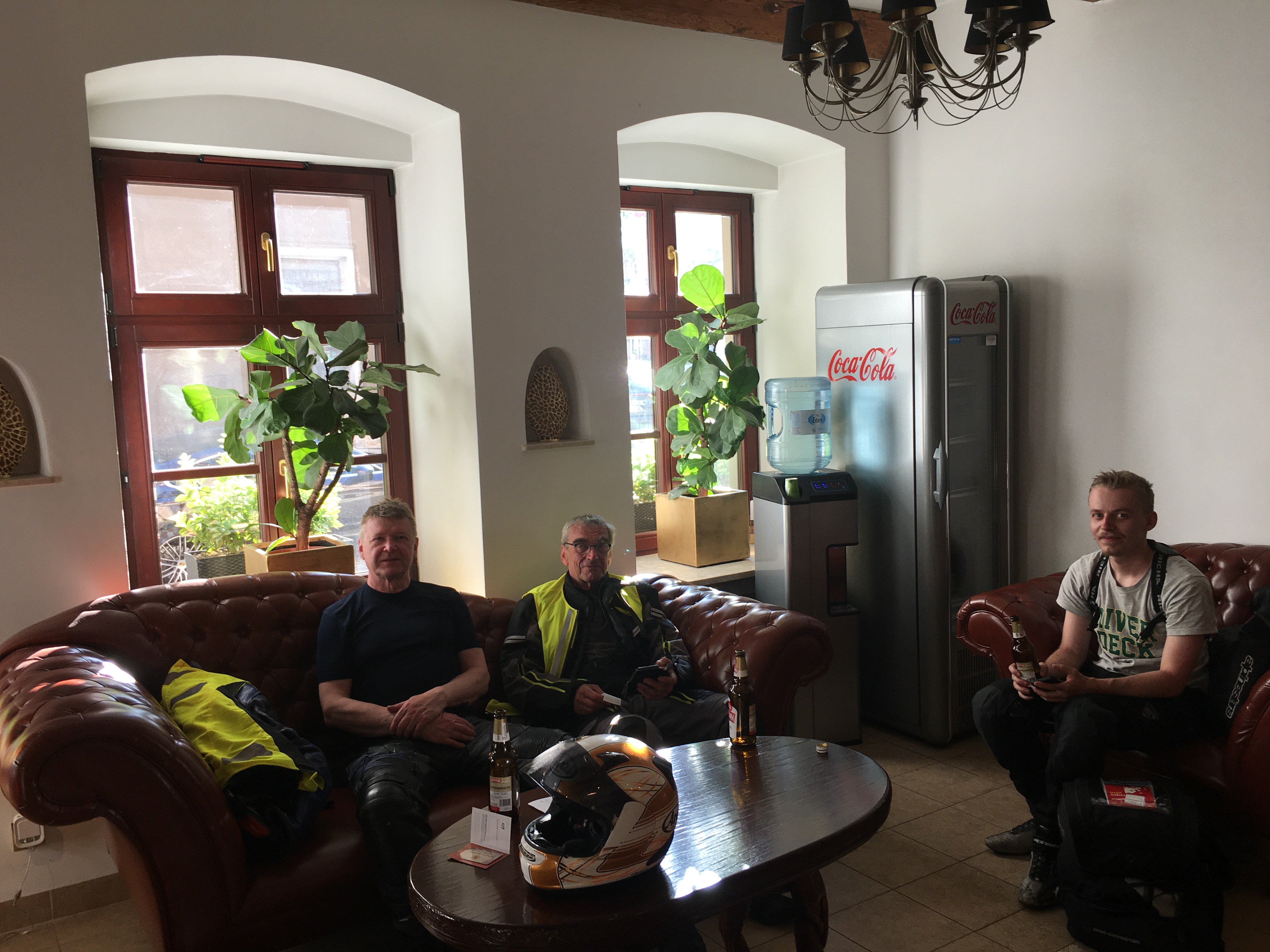 Takkikaljaperinteestä pyrimme pitämään kiinni koko matkan ajan ja hotelliin kirjautuminen aloitettiin yleensä yhdellä oluella ennen huoneeseen majoittumista. Hauska tapahtuma sattui Puolan Bielsko-Bialassa, missä nautimme hotellin aulassa bensa-asemalta ostetut takkikaljat. Kysyimme omien oluiden nauttimiseen lupaa respan kaverilta, joka hieman hämmästyi kysymyksestämme ja totesi, että ’totta kai voitte siinä nauttia oluenne hotellin aulassa kaikessa rauhassa’. Selvensimme kysymystämme kertomalla, että olemme Suomesta, missä vastaava, niin kuin moni muukin alkoholiin liittyvä asia, on ankarasti kiellettyä.