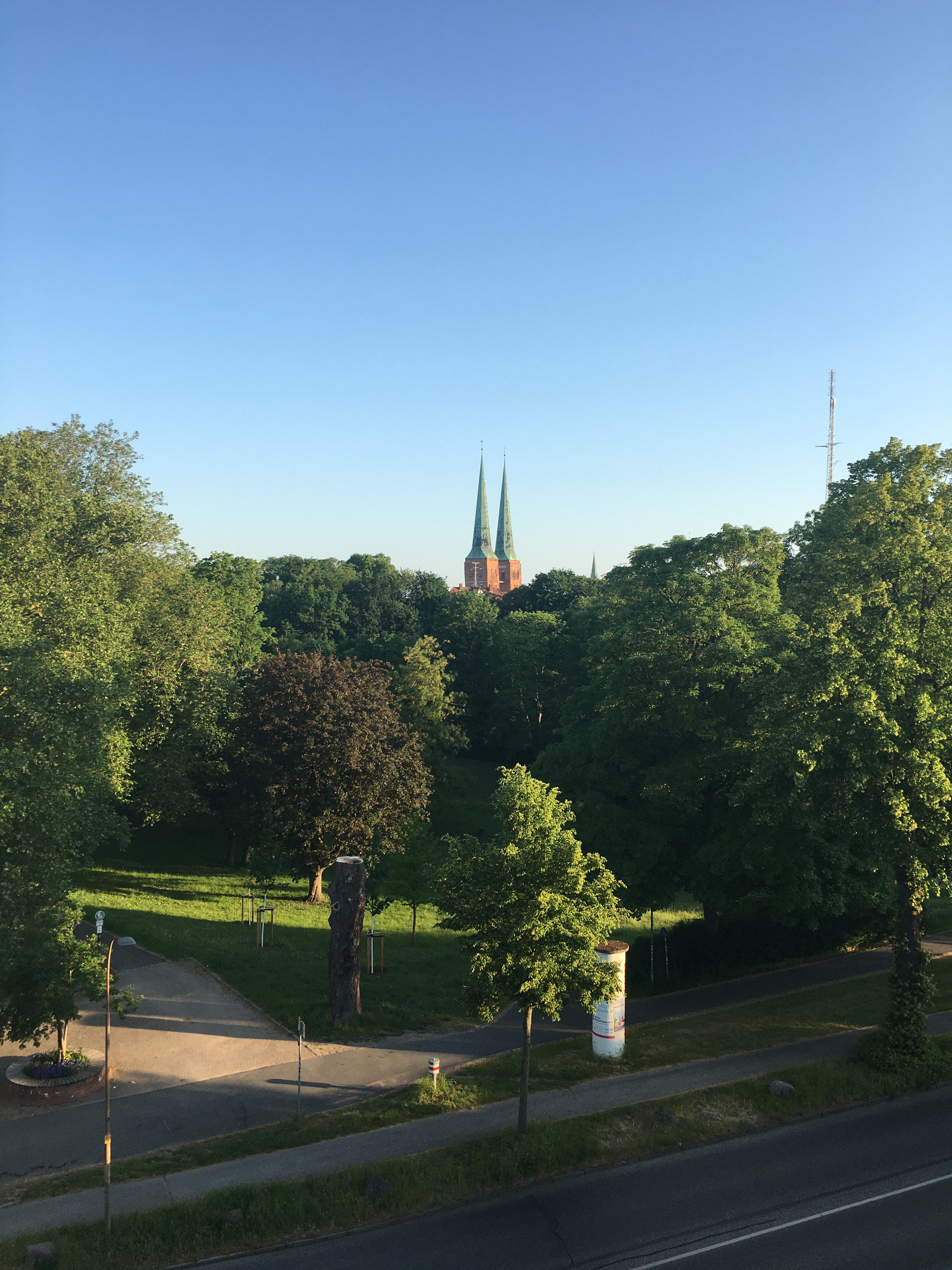 Koska ajopäivästä ei tulisi kovin pitkä, varasimme aamupäivän kaupungin kirkkoon tutustumiseen. Kirkon vanha puuovi, mihin Luther oli 1500-luvulla teesinsä naulannut, oli palanut, ja sen paikalla oli pronssinen ovi. Kirkko itsessään oli tehty kivestä ja siten säilynyt tulipalossa. Matkaan lähdimme kirkkovierailun tehtyämme bensa-aseman kautta, ja suuntasimme jälleen maaseututeille. Matkan varrelle jäi sellaisia kaupunkeja kuin Stendal ja Wittenberge (huom. ei Wittenberg vaan Wittenberge). Viimeinen satakunta kilometriä ennen Lyypekkiä sujui joutuisasti pitkin vähemmän liikennöityjä moottoriteitä. Matkalla Lyypekkiin teimme hotellivarauksen Kaiserhofista, aivan vanhan kaupungin kupeesta. Koska hotelli oli lähes täyteen buukattu, saimme käyttöömme perhehuoneiston, reissun tilavimman majoituksen. Respan vanhempi herrasmies suorastaan vaati meitä illallistamaan hänen suosittelemassaan paikassa, La Haciendassa, joten ravintolaakaan ei tarvinnut kauaa etsiä. Ensin teimme tosin kävelyn kaupungin kirkon kupeessa ja yritimme ostaa tuliaisiksi magneetit jääkaapin oveen, siinä onnistumatta. Ystävällinen kaupanpitäjä yritti auttaa meitä ostosten teossa pysäyttämällä paikallisia kadulla kulkijoita neuvomaan oikeaan kauppaa, mutta tällä kertaa apua ei löytynyt. Illalla teimme vielä netissä hotellivarauksen Lundiin ja laivavarauksen Tukholmasta Helsinkiin.