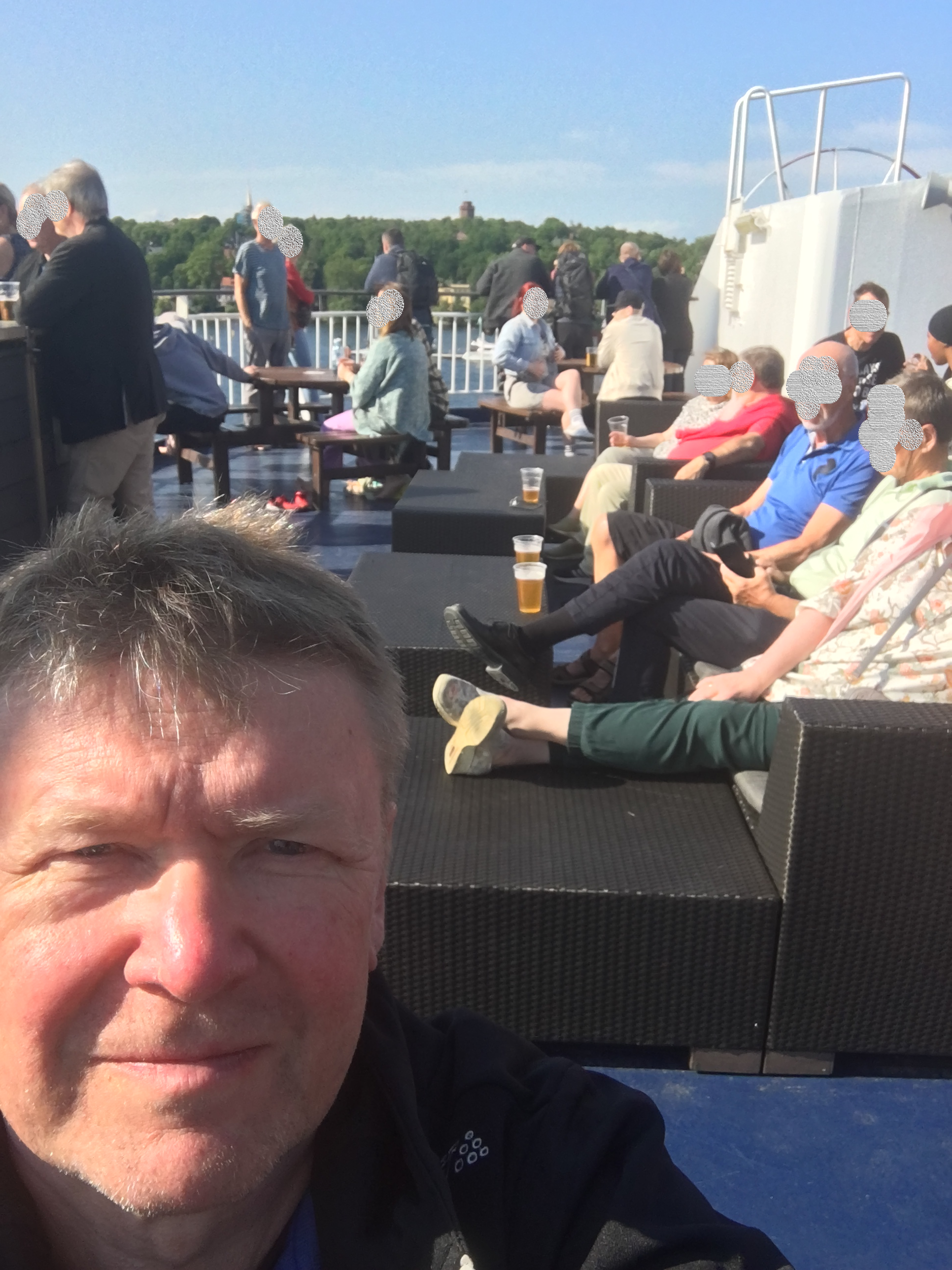 Tämä oli matkan pisin ajopäivä. Starttasimme jo klo 5:30, koska olimme varanneet liput Turun sijasta Helsinkiin menevään laivaan, joten satamassa piti olla jo kahden maissa iltapäivällä. Rytmitimme ajon sadan kilometrin pätkiin. Aamiainen hotellilla jäi väliin aikaisen lähtömme johdosta, ja nautimme sen ensimmäisessä pysähdyspaikassamme Skånepunktenissa. Sitten keulat kohti Jönköpingiä ja edelleen kohti Tukholmaa, minne saavuimme ’viiden pysähdyksen taktiikalla’ hyvissä ajoin. Olimme Tukholman liepeillä sen verran aikaisin, että kaupungin sisäänmenoteillä ei ollut ruuhkia ja pääsimme helposti suunnistamaan satamaan. Edessä olisi taas hyttiin majoittuminen, mikä tällä kertaa löytyi autokannen alapuolelta ja ’pakolliset’ seivovan pöydän antimet.