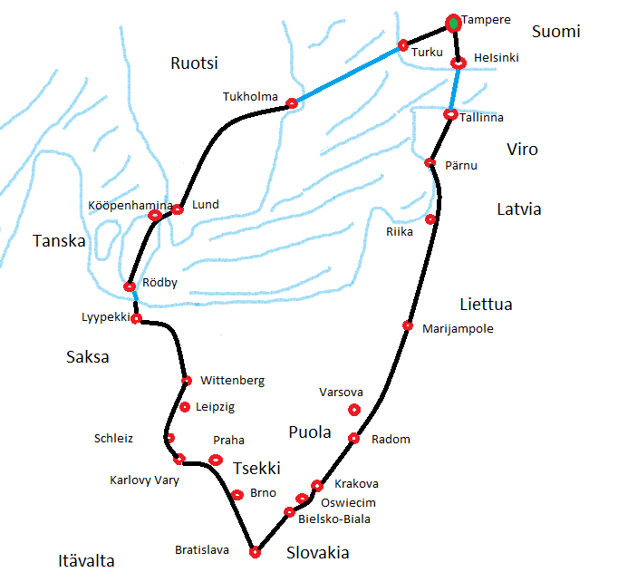 Maat: Viro, Latvia, Liettua, Puola, Slovakia, Tsekki, Saksa, Tanska, Ruotsi