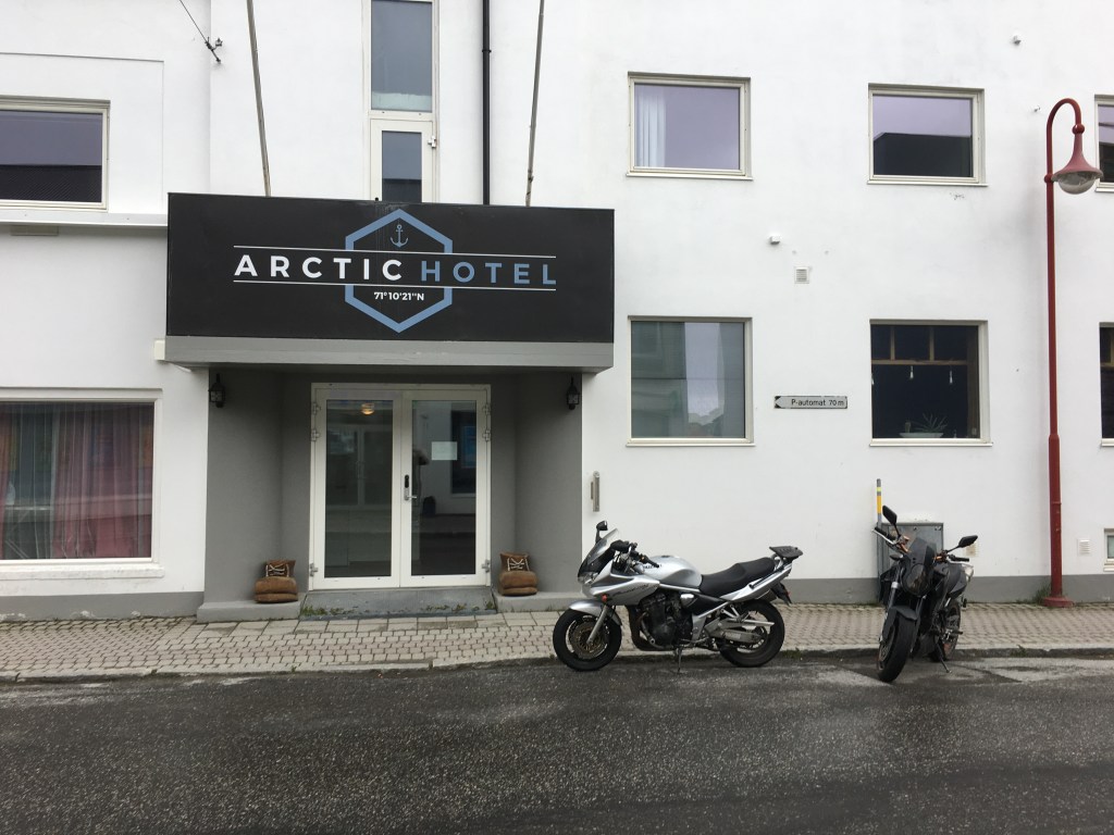 5. päivä Honningsvåg-Hammerfest. Päivä alkoi puolen tunnin pyrähdyksellä Euroopan pohjoisimpaan kolkkaan, minne moottoripyörällä pääsee, Nordkappiin. Saavuimme sinne sen verran aikaisin, että paikallinen museo ei ollut vielä auki. Kiertelimme niemen kärkeä aikamme pilvisessä ja viileässä säässä, otimme valokuvia kaikista niistä kohteista, joista turistin pitää kuvia ottaa ja aloitimme paluumatkamme. Palasimme sama reittiä, mitä olimme tulleet, aina Olderfjordiin asti, missä lähdimme kohti länttä ja Hammerfestiä. Matka taittui mukavasti jälleen viileässä mutta kuivassa kelissä. Ylitimme Kvalsundbrua-sillan ja pian saavuimme Hammerfestiin. Pienessä kauniissa merenrantakaupungissa hotelli löytyi nopeasti. Hotellihuone oli yksi pienempiä näkemiäni. Vain Japanissa olen törmännyt pienempään. Kaupungissa lokkien määrä oli uskomattoman korkea ja erään talon katto olikin vuorattu lokkien pesillä. Jostain syystä kaikki lokit olivat valinneet saman katon. Illalla ravintolassa ruokaillessamme ei muita asiakkaita juuri ollut, koska paikalliset hakivat koronaa karttaessaan annoksensa kotiin. Rasvattuamme pyörien ketjut jätimme pyörät tien varteen odottamaan seuraavan aamun taivalta, mikä veisi meidät rannikkoa pitkin kohti etelää. Matkaa päivälle kertyi 240 km.