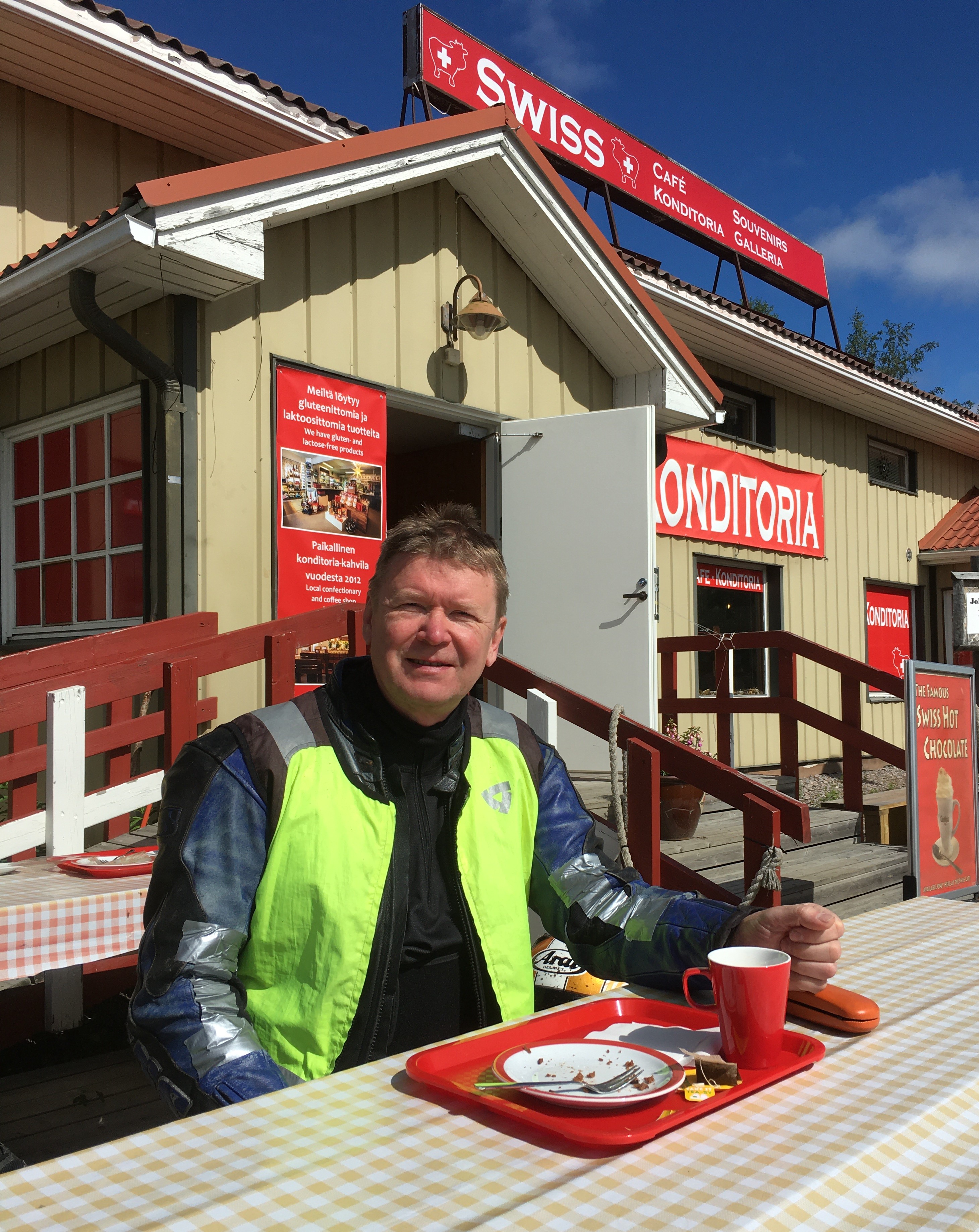 9. päivä: Alaniemi-Tampere. Kotimatkan ensimmäinen etappi oli Oulu, missä toiseen pyöristä vaihdettiin uusi takarengas. Ylimääräisen ajan käytimme istumalla hampurilaisravintolassa kahvia litkien. Kun uusi rengas oli alla, suuntasimme kohti etelää kautta Oulaisten, Ylivieskan ja Kaustisten, missä poliisit olivat valvomassa liikenteen ajonopeuksia kaupunkiin sisääntuloväylällä johtuen lähestyvästä juhannuksesta. Tankattuamme itsemme suuntasimme kohti Vimpeliä ja Virtoja, mistä olikin enää lyhyt matka määränpäähän Tampereelle. Matkaa tälle kotiintulopäivälle kertyi reippaanpuoleisesti 600 km.
