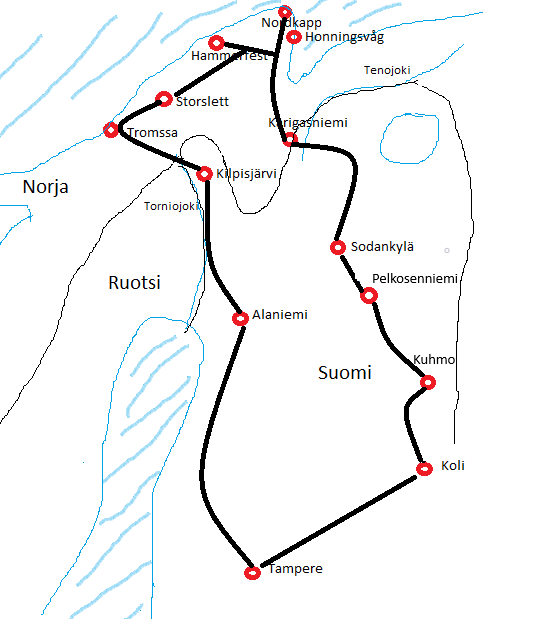 Kuva: Nordkappissa ja pysähdys Muoniossa