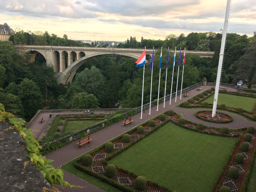 5. päivä: Meppen-Luxemburg. Tämä päivä oli ’suunnistuspäivä’. Aamutuimaan ajoin moottoritielle ja sitä pitkin Hollannin puolelle Enscheden kaupunkiin. Ajoin Assenin MotoGP matkalta tutulle kaupungin keskustorille, missä istuskelin ja odottelin ravintolan aukeamista. Kaikki isommat tiet tuntuivat olevan itä-länsi suunnassa, mistä johtuen ajelin pikkuteitä pitkät pätkät. Matkalla tuli vastaan sellaisin kaupunkeja kuin Venlo, Maastricht ja Liege. Välillä reitti kävi Saksan puolella kunnes palasi Hollantiin. Liegen kohdalla tein pienen harhaan ajon kun ajatuksissani matkaa tehden ajoin liittymän ohi ja löysin itseni Liegen esikaupunkialueelta. Mutta ennen pitkää Luxemburg tuli vastaan, missä hotelli tai oikeammin omakotitalon vintti odotti väsynyttä matkaajaa. Illalla kävelin keskustaan ja ihailin matkalla kaupungin suuria korkeuseroja. Iltapala kaupungin keskustassa ja takaisin hotellille valmistautumaan seuraavaan matkapäivään. Alun perin olin päättänyt, että Luxemburgissa teen päätöksen loppumatkan reitistä. Nyt olin päättänyt että loppureitti veisi Sveitsiin ja Alppien väliseen laaksoon. Matkaa kaikkine harhailuineen kertyi tälle päivälle 530 km.