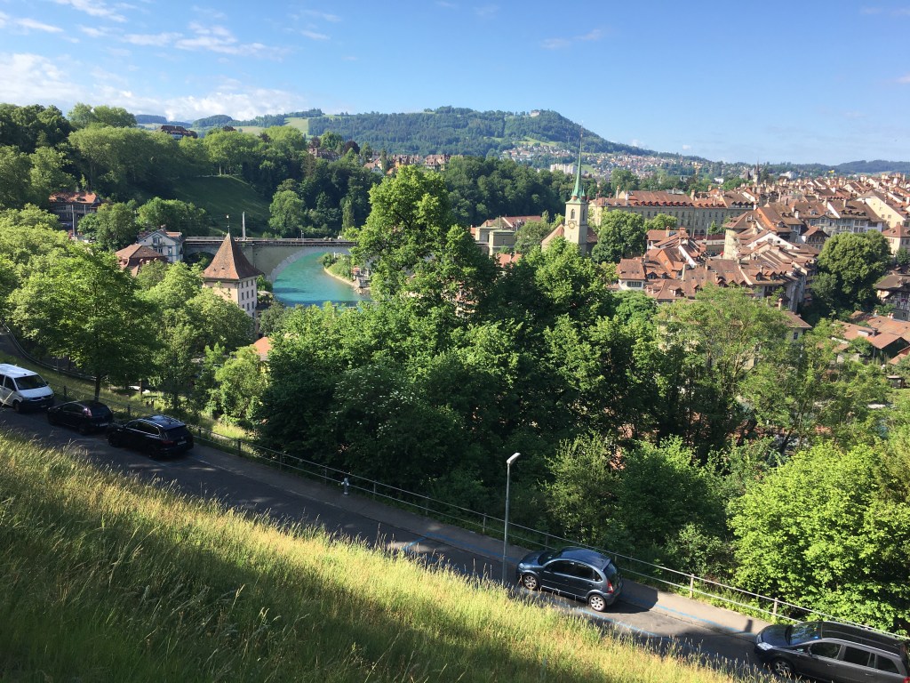 Seuraavaksi oli määränpäänä Colmar. Kaupungin sisääntulossa otti vierailijat vastaan Vapaudenpatsas, samanlainen kuin Manhattanin edustalla. Ranskalaisethan tuon patsaan USA:han aikoinaan lahjoittivatkin. Colmarissa ajelin pitkin kaupunkia ennen kuin sen keskusta ja vanhakaupunki löytyi. Ehdottomasti vierailun arvoinen kaupunki. Sitten suuntasin kohti Sveitsiä ja Baselia, jonne saapuessa piti maksaa 40 euron moottoritiemaksu. Seuraavalla pysähtymispaikalla huomasin että kännykkä ei toimi. Berniin saapuminen alas vuoren rinnettä oli ikimuistoinen maiseman puolesta. Oman haasteensa toi nyt hotellin löytyminen. Kun sen vihdoin löysin, oli vastaanotto suljettu. Matkasta väsyneenä mietin mitä tehdä, mutta mutkien kautta asiat järjestyivät ja sain huoneen. Illalla kävely Berniä ympäröivän joen ylitse kaupungille ja iltapalalle. Matkaa päivälle kertyi 510 km.