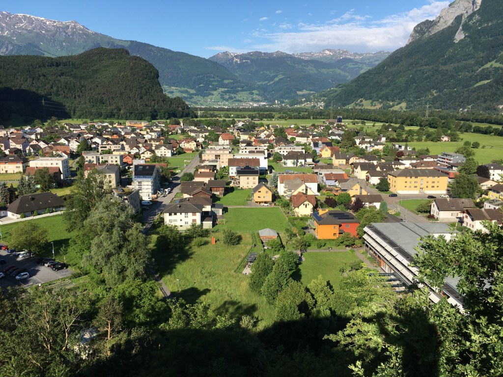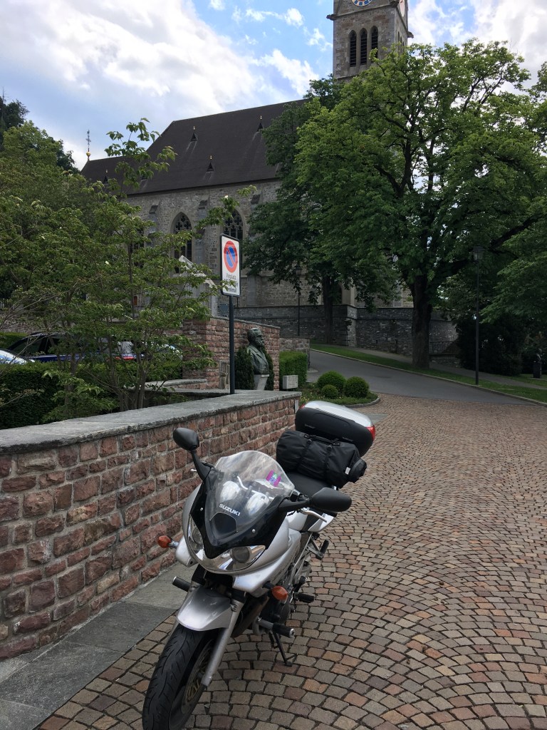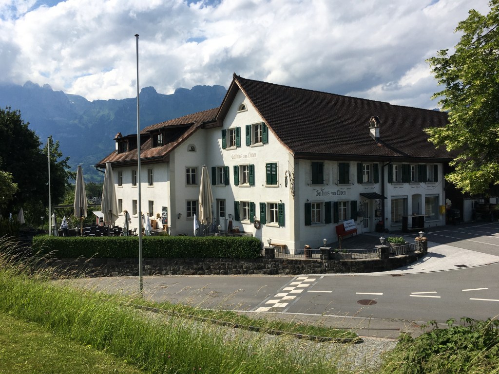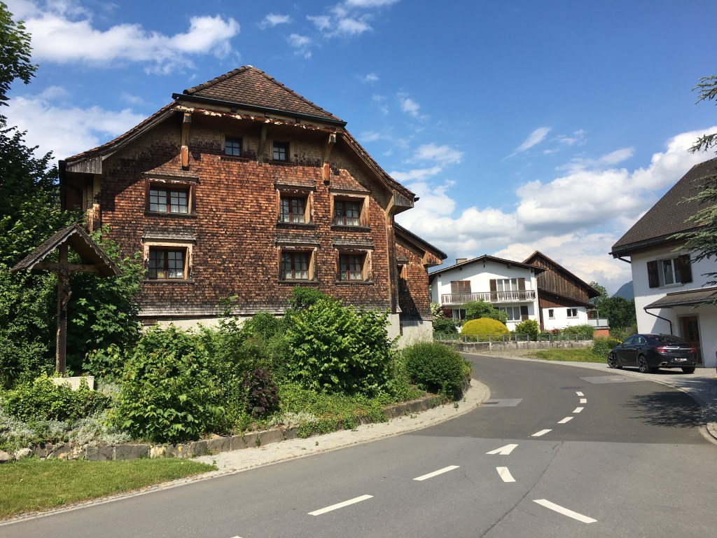 8. päivä: Wassen-Liechtenstein. Aamulla majatalon isäntä onnitteli minua Suomen MM-jääkiekon kultamitalin johdosta. Hän myös neuvoi tien seuraavaan etappiini Liechtensteiniin, joka alkaisi nousemalla vuoren rinnettä ylöspäin. Ajatus vuoren rinnettä nousemisesta ei enää innostanut, joten lähdin juuri päinvastaiseen suuntaan. Onneksi, koska vastaan tuli aivan uskomattoman kauniit järvimaisemat. Seurailin päivän pääosin maaseututeitä ja muutaman tunnelin jälkeen saavuin hyvissä ajoin Liechtensteiniin, noin kymmenen kilometriä Vaduzista pohjoiseen. Illalla oli hyvin aikaa kävellä pitkin kauniita maaseututeitä etsien sopivaa ravintolaa missä illastaa. Adler-pub ei ollut varsinaisesti ravintola, joten jouduin tyytymään yhteen isoon juustolla kuorrutettuun paahtoleipään. Matkaa rauhalliselle ajopäivälle kertyi vain 160 km.