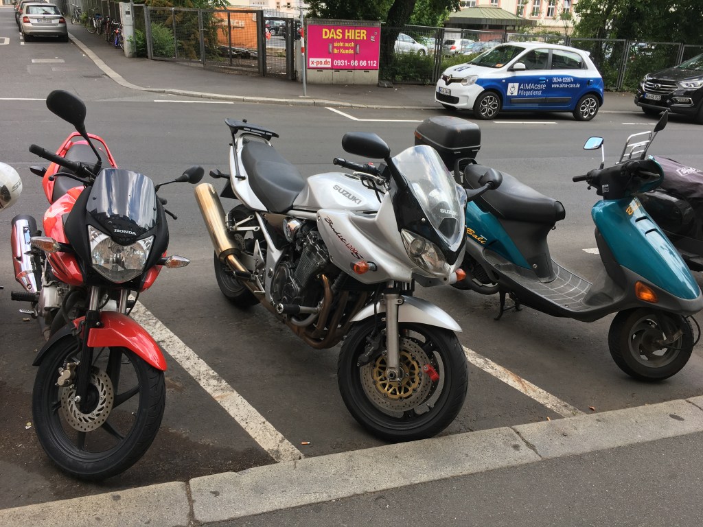 3. päivä: Lund-Flensburg. Aamulla edellisen päivän matkarasitus vielä tuntui, joten päätin ottaa lyhyemmän ajopäivän. Varasin hotellin Tanskan ja Saksan rajalla sijaitsevasta Flensburgin kaupungista. Päivän reitti vei yli kahden pitkän sillan, ensimmäisen ollessa Ruotsin ja Tanskan välinen Öresundsbro-silta ja toinen Tanskan sisäinen Storebeltin silta. Jälleen oli uhkana lännestä lähestyvä sadealue, joten en juurikaan viettänyt aikaa levähdysalueilla. Koldingin kohdalla tien kaartaessa kohti Saksaa, ajoi liittymästä tielle noin kahdenkymmenen motoristin ryhmä. Tämän ryhmän perässä ajelin Saksan rajalle asti. Saksalla oli tiukemmat korona-säädökset kuin muulla Euroopalla, joten odotin rajalla tarkastuksia. Tarkastuksia ei kuitenkaan ollut ja ajoin rajan yli edes huomaamatta missä raja kulki. Noin minuutin mittainen rankka sadekuuro pääsi yllättämään, mutta Flensburg alkoi jo lähestyä. Pikaravintolassa vietetyn ruokailutauon jälkeen jatkoin matkaa kohti kaupungin keskustaa, mistä löysin etsimäni hotellin. Olin sen verran aikaisessa, että huoneet eivät vielä olleet luovutuskunnossa, joten päätin tilata yhden saksalaisen oluen, Flensburger Pilsnerin. Nyt alkoi alkumatkan lievä stressikin poistua ja hyvä matkafiilis heräsi eloon. Matkaa päivälle kertyi 380 km